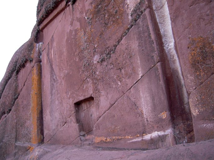 7: Aramu Muru: Ernesto from our group arranged a few outings to Aramu Muru, a large 20 foot (7 meter) Gateway carved into a rock cliff by a pre-Inca civilization. Alanah sends you a heart from in front of it. :-) Legend says if you approach the Gateway properly, you can pass through it into other worlds! A close up view of the Gateway can be seen here. Notice the seven frosted crystal singing bowls being laid out.