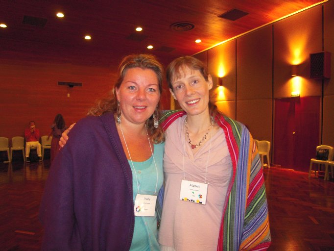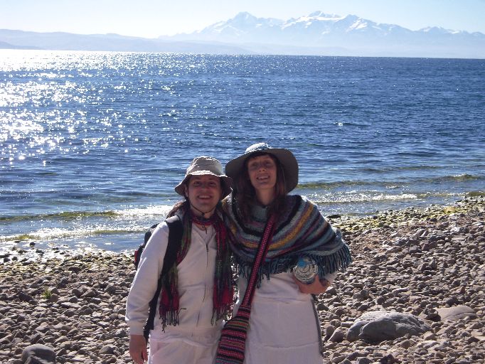 12: Sebastian and Alanah: Sebastian (with a new poncho he bought in Puno) and Alanah send you blessings from outside Hotel Libertator. Another picture of Trude and Alanah in the conference room where we held our sessions to prepare for the Activation can be seen here.