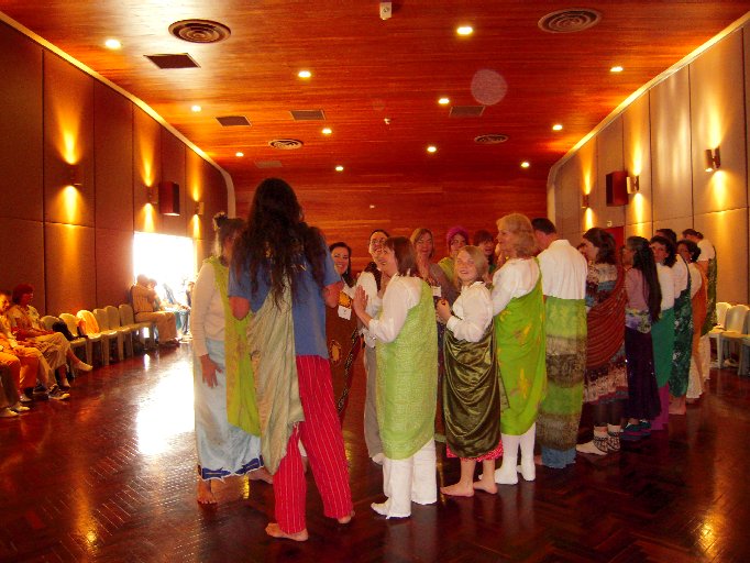 15: Lion Walk: Nonna and Myong demonstrate the Lion Walk as Golden Winged Lions. Wings outstretched, tails up, hearts like a million Suns, and One with all in every step! A picture of Yana with lions peeking out of her boots can be seen here. :-)
