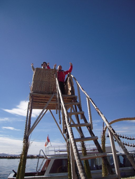 8: Boat Ride: Ankasha, Sebastian, and Kalasara enjoy a boat ride to the Uros Floating Islands on Lake Titicaca.