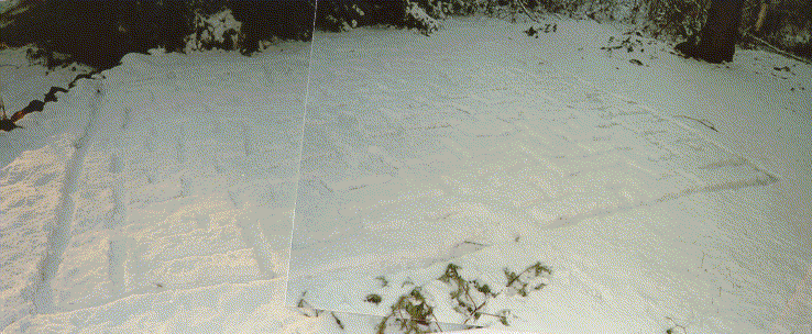 I carved in the snow on the front lawn of where I lived around 1987. The image